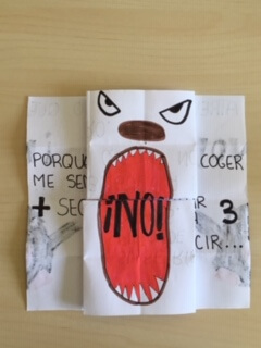 – Preparar el formato de libro infinito en blanco. Tras la portada, escribir dos situaciones con las que el niño no se atreve a responder no.